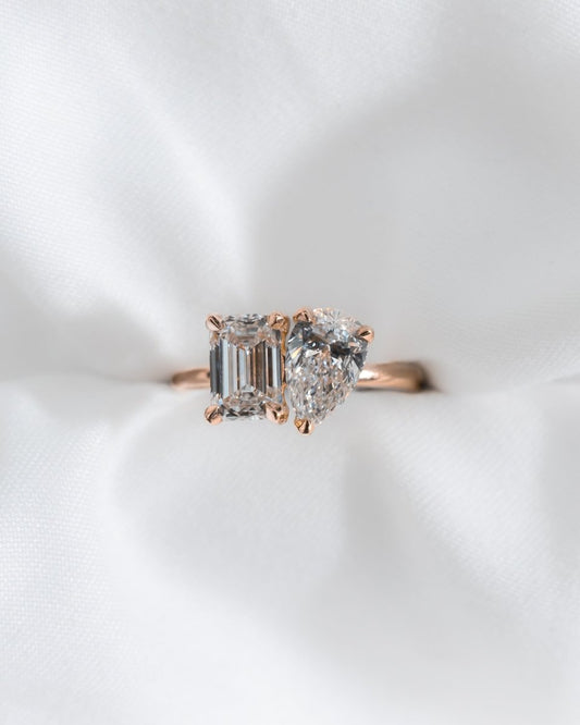 Emerald & Pear Rose Gold Lab Grown Diamond Pair Engagement Ring