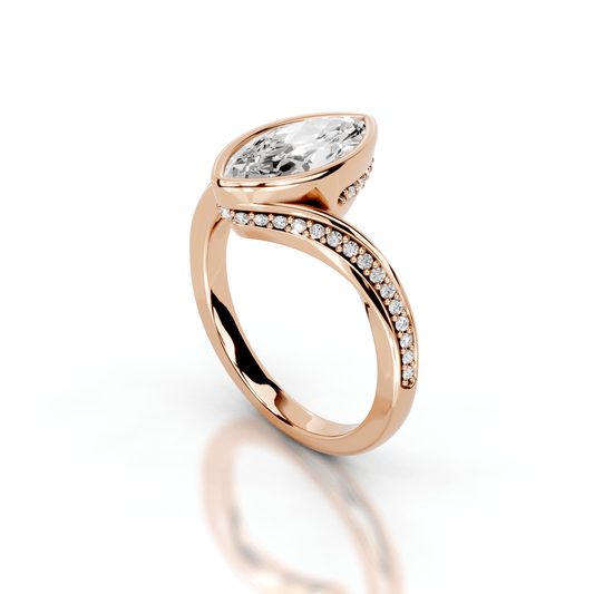 18k Rose Gold Marquise Twisted Lab Diamond Engagement Ring