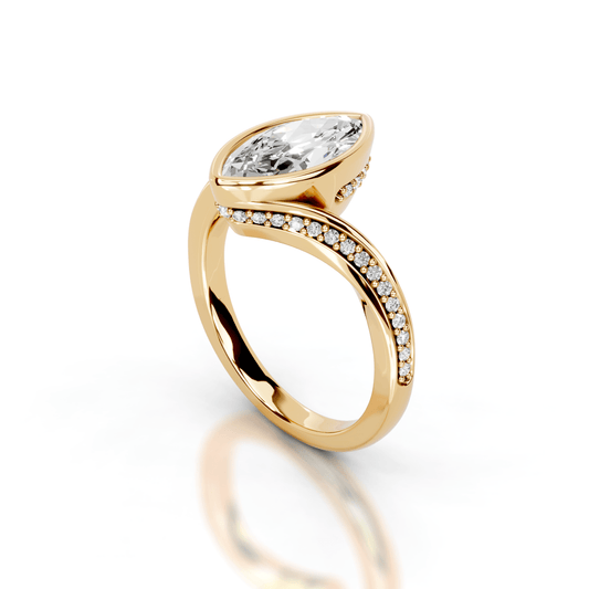18k Yellow Gold Marquise Twisted Lab Diamond Engagement Ring