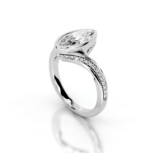 18k White Gold Marquise Twisted Lab Diamond Engagement Ring