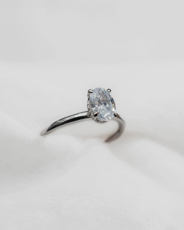 Oval White Gold Lab Grown Diamond Engagement Ring (Hidden Halo)