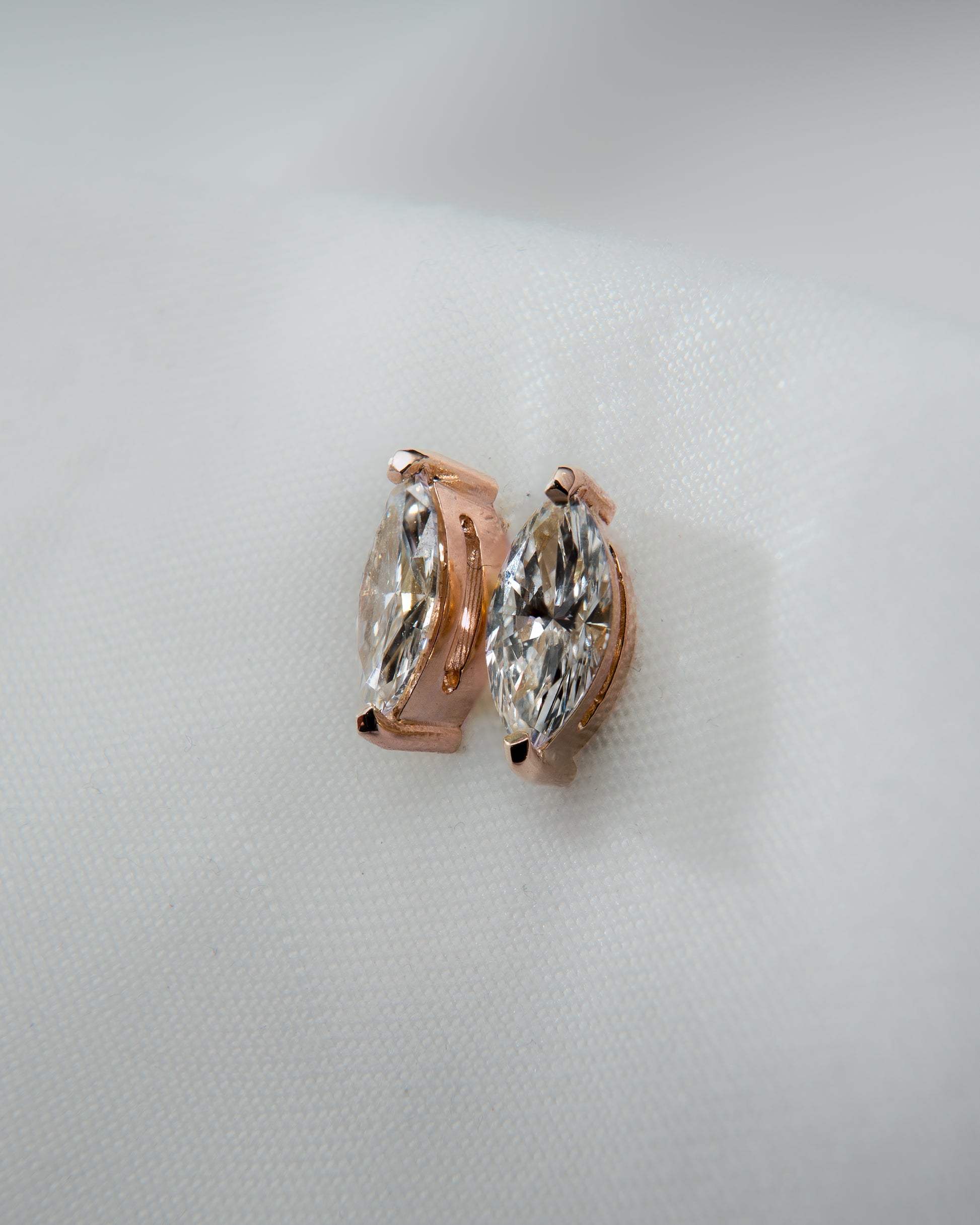 Marquise Lab Grown Diamond Stud Earrings | 18k Rose Gold